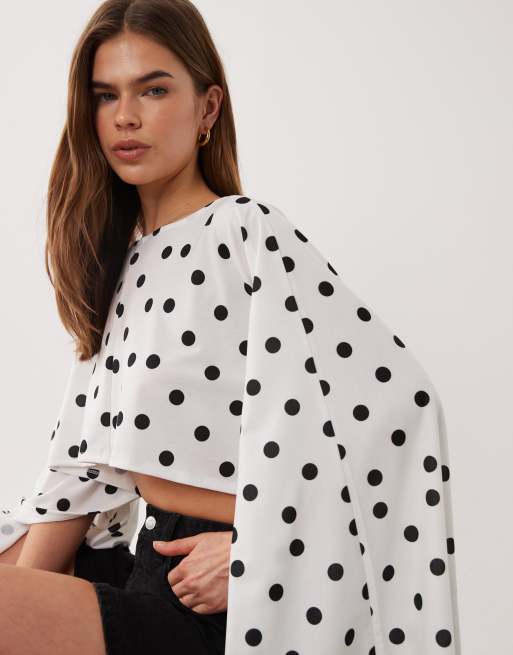 ASOS DESIGN jersey cape style top in white polka dot print