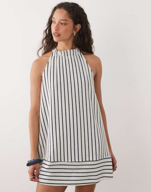 ASOS DESIGN jersey halter neck a line mini dress in mono stripe