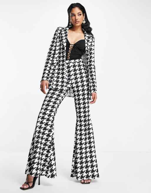 ASOS DESIGN jersey houndstooth print suit superflare trousers in multi