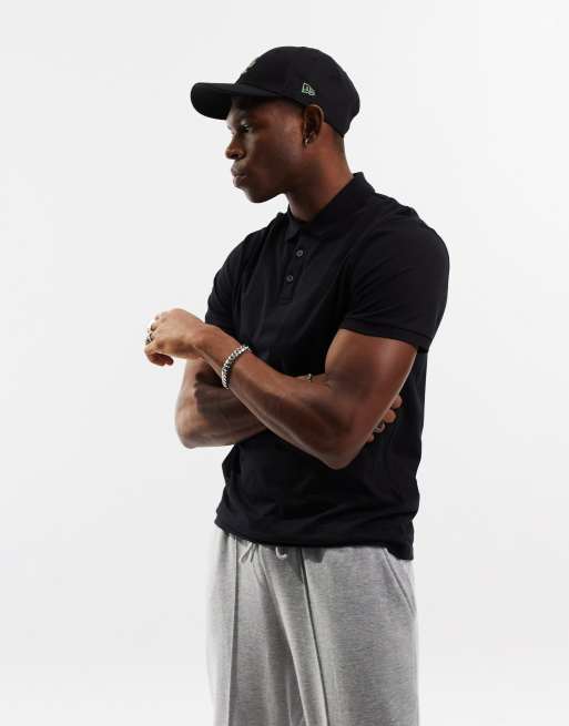 ASOS DESIGN jersey polo in black - BLACK