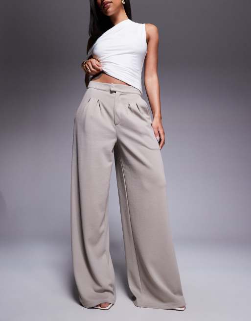 ASOS DESIGN jersey twill wide leg trouser in stone