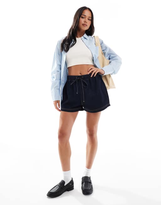 ASOS DESIGN jogger style denim pull on short in rinse wash