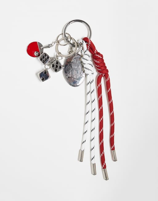 ASOS DESIGN keyring bag charm in red cord with table tennis charm in multi