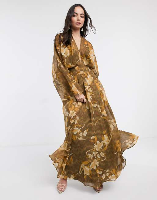 ASOS DESIGN kimono sleeve maxi dress in oversized floral print