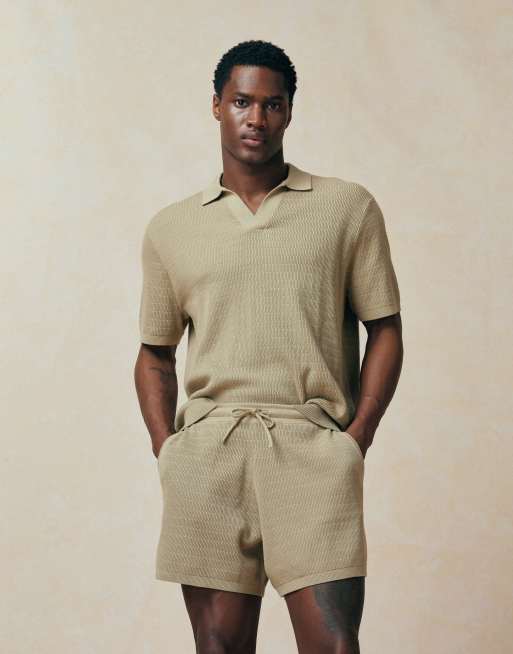 ASOS DESIGN knitted airtex shorts in stone