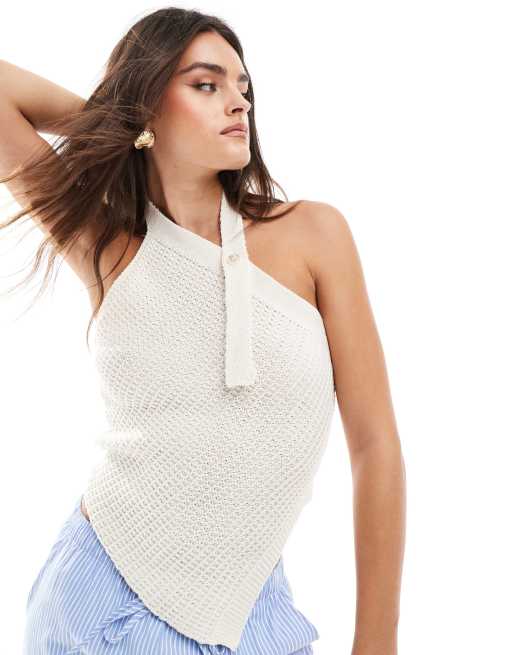 ASOS DESIGN knitted asymmetric button top in cream