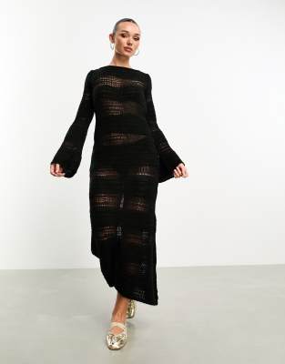 ASOS DESIGN knitted burn out stripe maxi dress in black