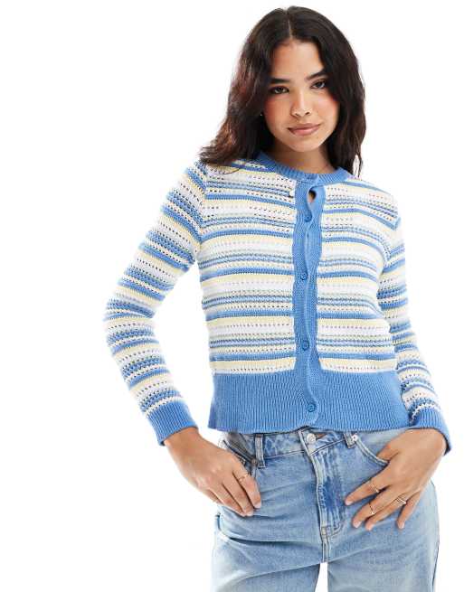 ASOS DESIGN knitted cardigan in blue stripe