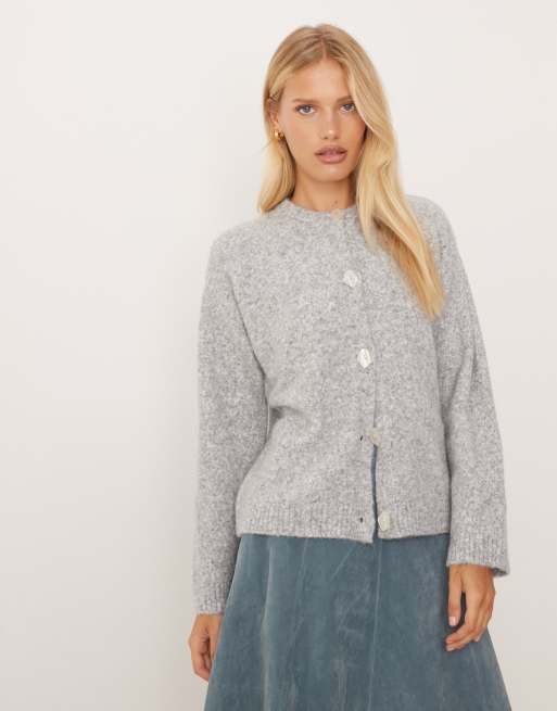 ASOS DESIGN knitted cardigan with button interest with wool in pink