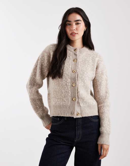 ASOS DESIGN knitted cardigan with gold buttons in print