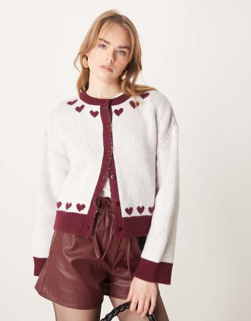 ASOS DESIGN knitted cardigan with hearts in cream