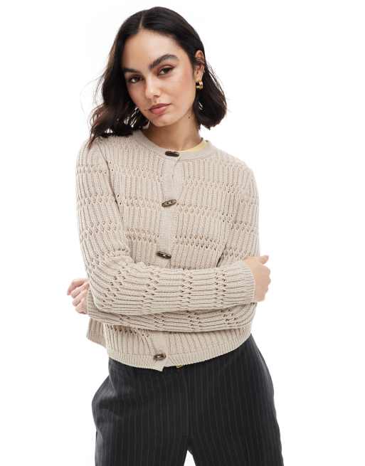 ASOS DESIGN knitted cardigan with toggle buttons in cream
