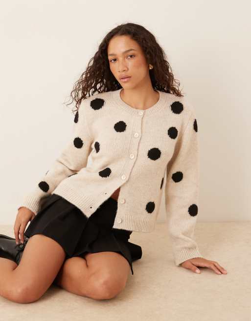 ASOS DESIGN knitted cardigan with wool in polka dot