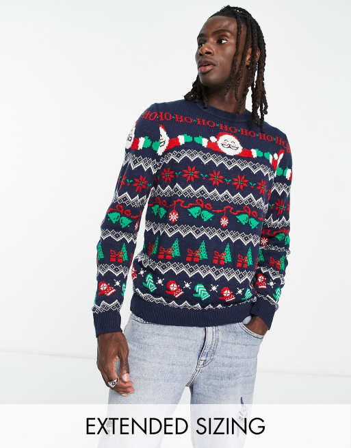 ASOS DESIGN knitted Christmas jumper with Santa fairilse in blue