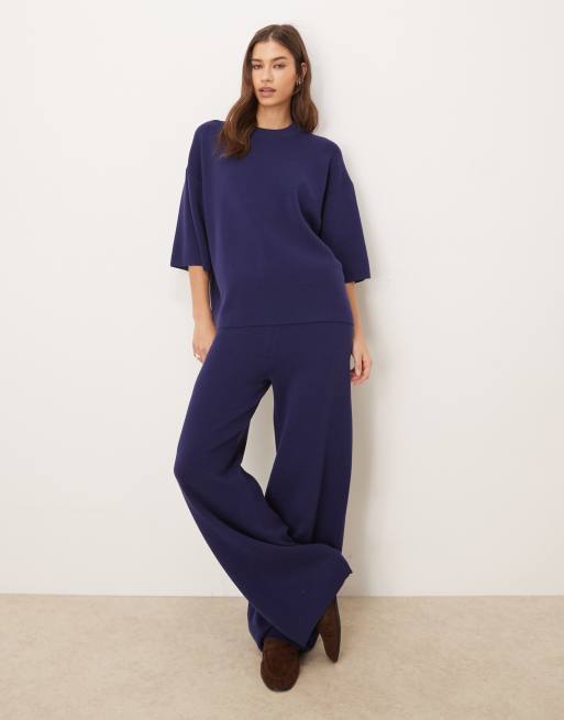 ASOS DESIGN knitted compact structured oversized t shirt & trousers co-ord in navy