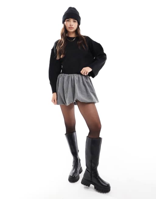 ASOS DESIGN knitted crew neck boxy jumper with wide cuff & midi skirt co-ord in black