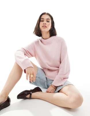 ASOS DESIGN knitted crew neck jumper with raglan sleeve in pink