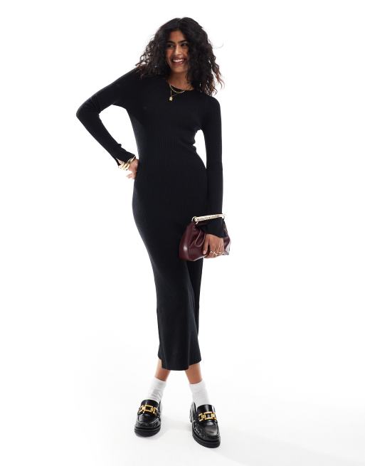 ASOS DESIGN knitted crew neck maxi dress with cuff splits in black -