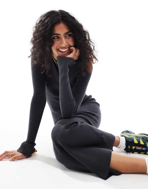 ASOS DESIGN knitted crew neck maxi dress with cuff splits in charcoal - GREY