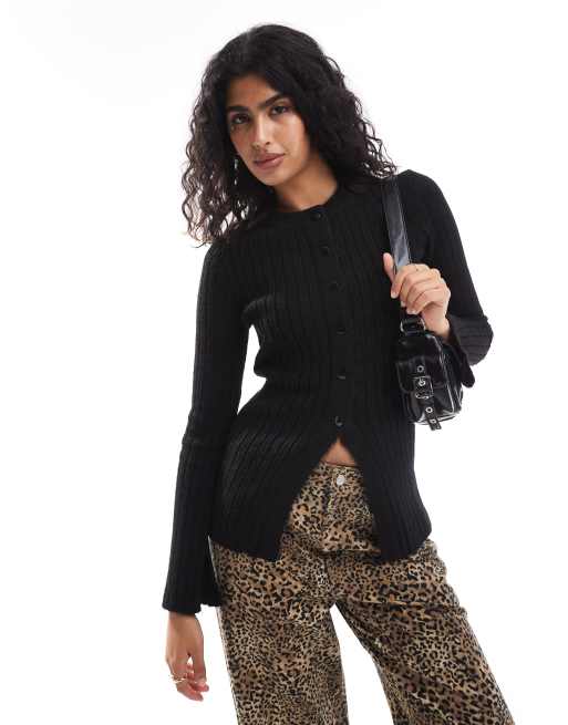 ASOS DESIGN knitted crew neck split front cardigan in black