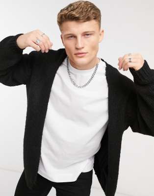 ASOS DESIGN knitted edge to edge cardigan in black fluffy yarn