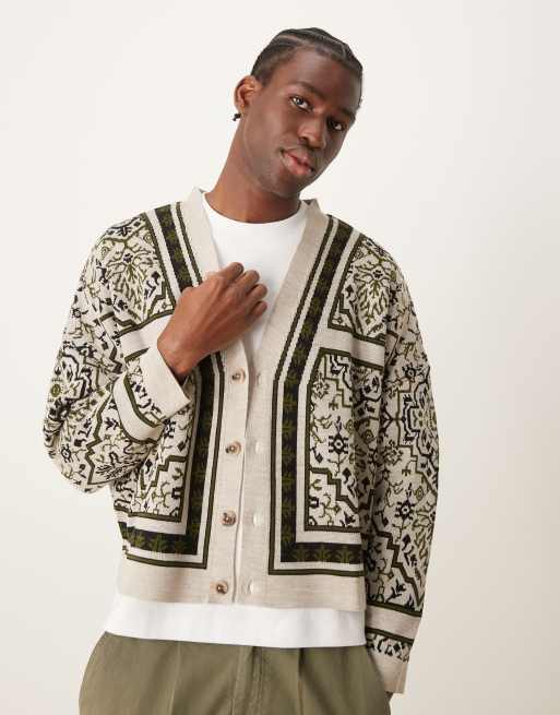 ASOS DESIGN knitted extreme oversized cardigan with pattern in off white