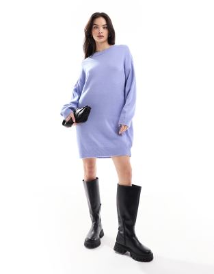 ASOS DESIGN knitted jumper mini dress with crew neck in blue