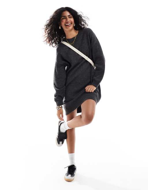 ASOS DESIGN knitted jumper mini dress with crew neck in charcoal