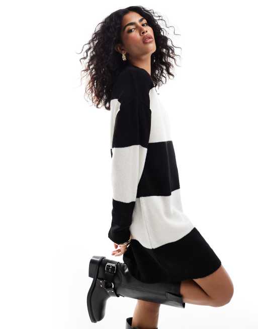 ASOS DESIGN knitted jumper mini dress with crew neck in stripe