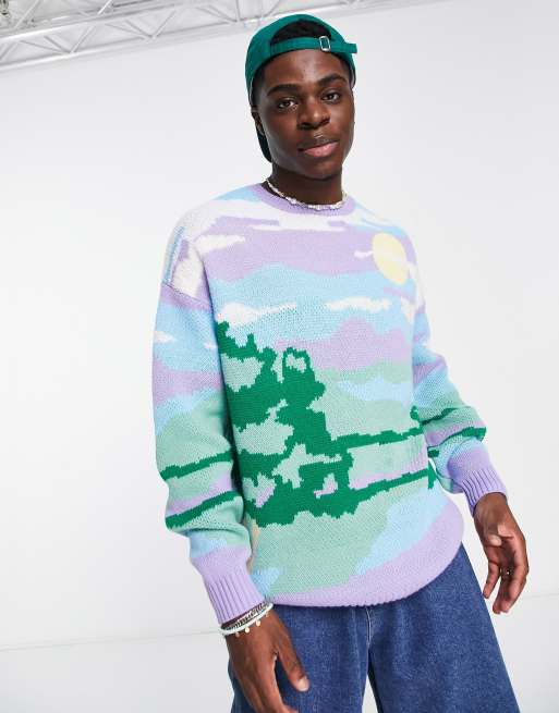 ASOS DESIGN knitted jumper with landscape jacquard