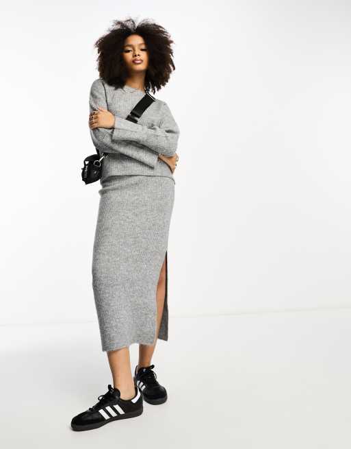 ASOS DESIGN knitted midi skirt in grey co-ord