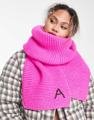 ASOS DESIGN knitted monogram scarf with A initial in pink
