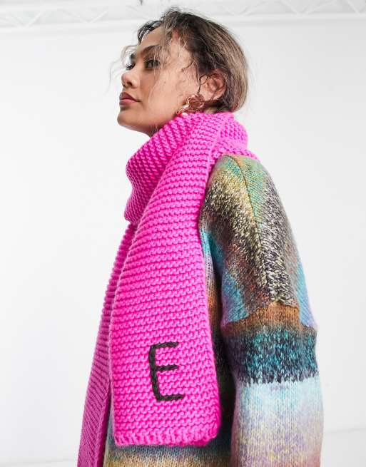 ASOS DESIGN knitted monogram scarf with E initial in pink