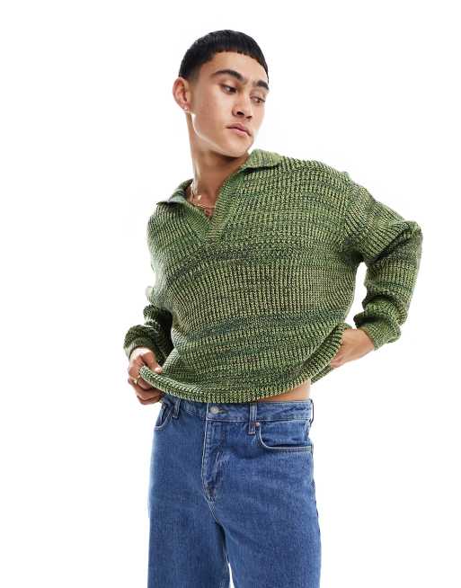 ASOS DESIGN knitted notch neck jumper in green twist