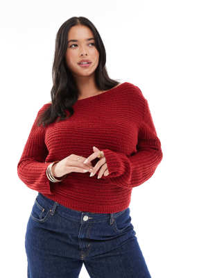 ASOS DESIGN knitted off the shoulder slouchy jumper in red