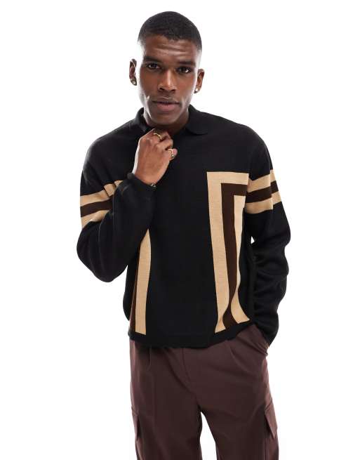 ASOS DESIGN knitted oversized boxy polo with panelling