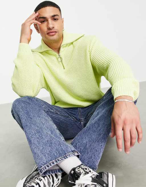 ASOS DESIGN knitted oversized fisherman rib oversized collar jumper in lemon