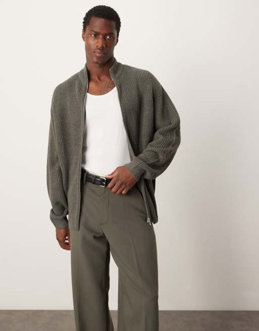 ASOS DESIGN knitted oversized fisherman rib zip through in grey