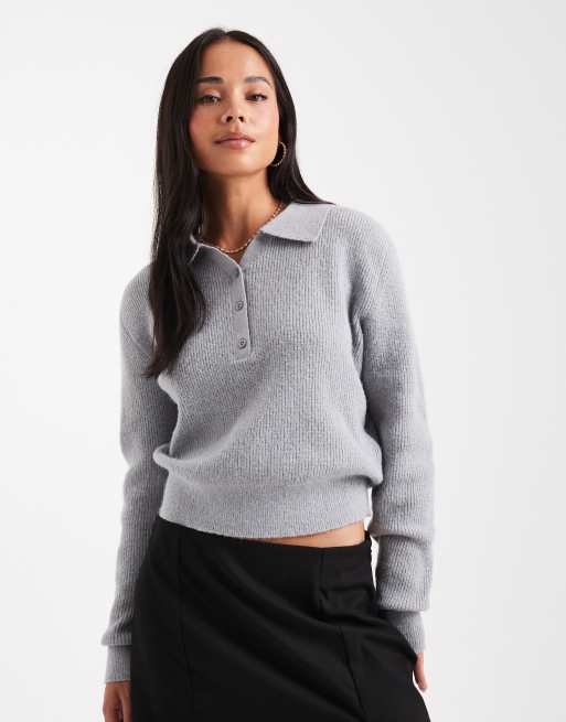 ASOS DESIGN knitted relaxed collar henley jumper in light grey