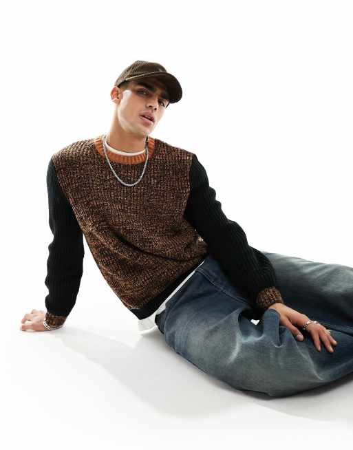 ASOS DESIGN knitted relaxed jumper in brown texture