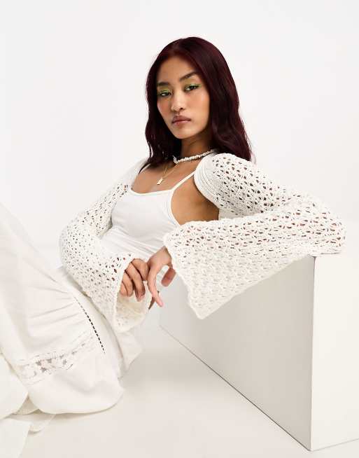 ASOS DESIGN knitted shrug cardigan in ivory