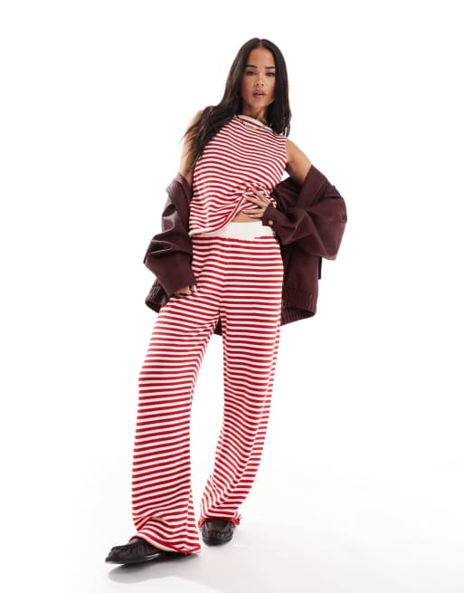 ASOS DESIGN knitted slash neck top and trouser co ord in red