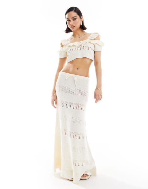 ASOS DESIGN knitted stitch cami top & midi skirt in cream co-ord