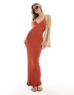 ASOS DESIGN knitted strappy v neck midaxi dress in terracotta
