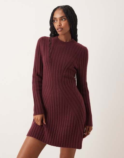 ASOS DESIGN knitted structured mini dress in plum