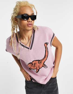 ASOS DESIGN knitted tank with dinosaur design in pink