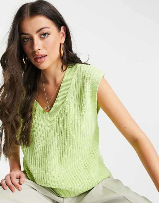 ASOS DESIGN knitted tank with v neck in lime green