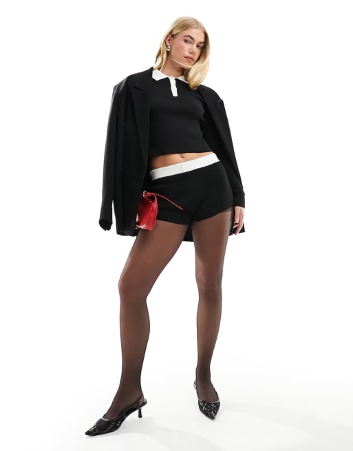 ASOS DESIGN knitted top with collar and contrast trim & shorts co-ord in black