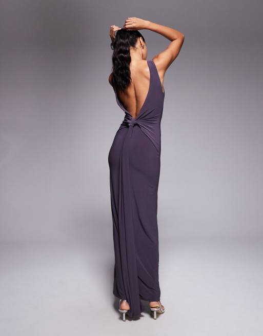 ASOS DESIGN knot back sculpting draped maxi dress in grey