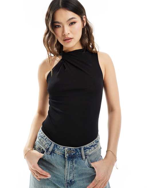 ASOS DESIGN knot detail bodysuit in black